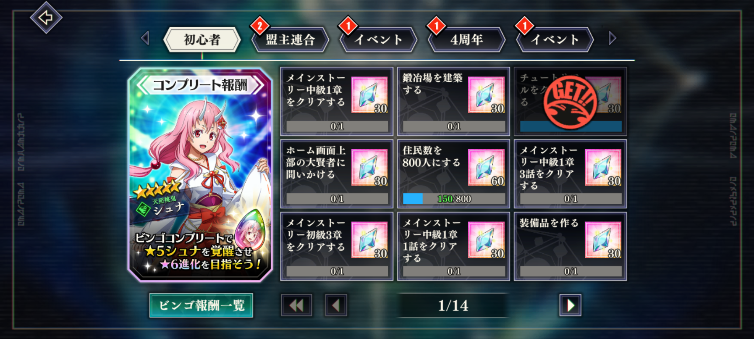 これらのミッションをコンプリートすると、最大でスカウト140連分の魔晶石(4200個)や★5のシュナを手に入れることができます!