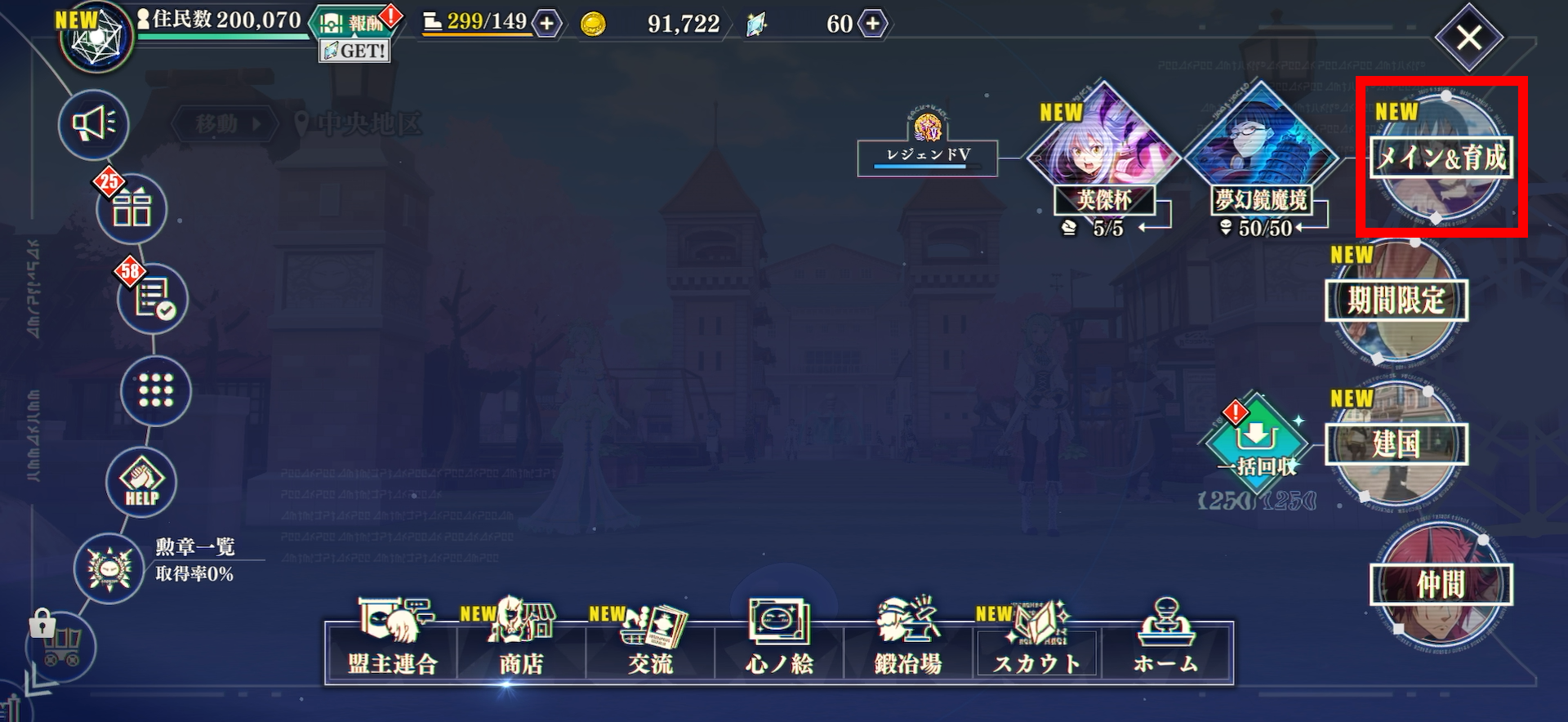 グローバルメニューの「メイン&育成」ボタンをタップすることで、メインストーリーを読むことができます。