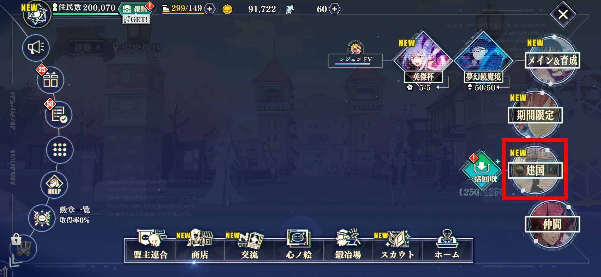 建築は、グローバルメニューの「建国」欄から行うことができます。